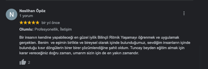 Bilinçli Ritmik Yaşam Metodu ile kendi yaşamına farklı bir bakış açısı kazanan, kendini daha yakından tanıyan ve dönüşüm sürecini deneyimleyen kişilerin paylaşımlarını bu sayfada bulabilirsiniz.